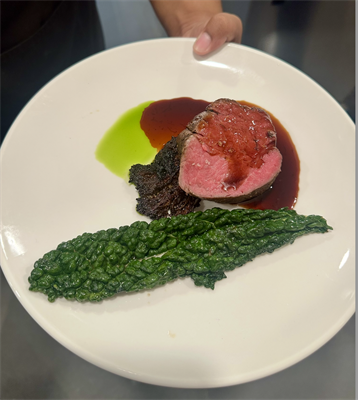 Seared prime beef tenderloin, rosemary jus, wild mushrooms, crowned with a light Gorgonzola Dolce foam.