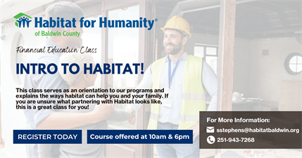 Questions? Call (251) 943-7268 or email sstephens@habitatbaldwin.org.