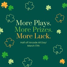 Join us March 17th from Open to Close for a full day of half-price fun!